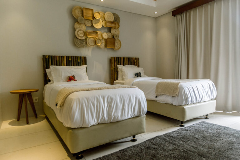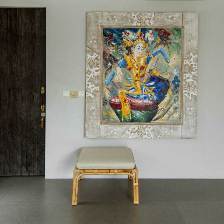 With the immediate surroundings, you can find selections of cafe’s, restaurants, and shops near the Villa. Close proximity to Bali’s lifestyle nest, of Seminyak, Kerobokan, and Canggu. Villa Mesari Sikih is set within a villa complex of Villa Moyo, a single story 3 + 1 bedroom Villa, with a humble design that complemented modern aesthetics. Creating warm, inviting feel for guests to relish. Encircled by tropical greenery landscape, filled with selected interiors created by local crafters, and curated Balinese paintings has made this property a unique accommodation that is suitable for all groups.